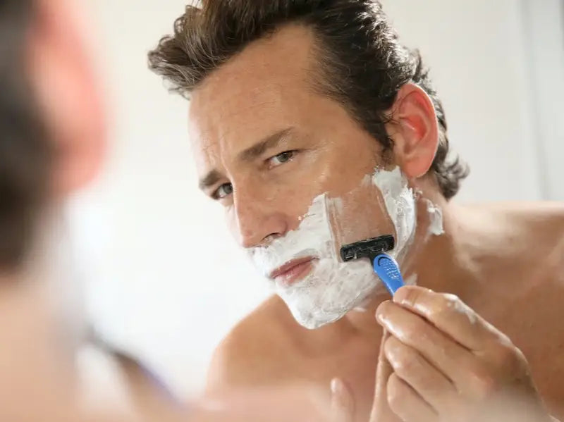 Follow your normal pre shave routine including a hot shower, apply a few drops to a wet face and massage into the skin. after shaving apply cold water to the face and neck.